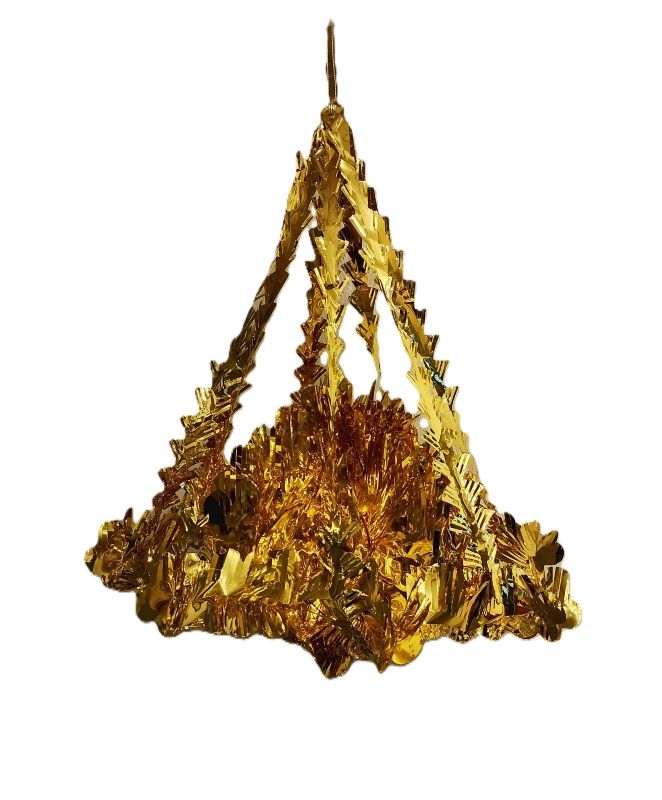 "Lysekrone" av gull med tagget oppheng - original 1970-talls julepynt