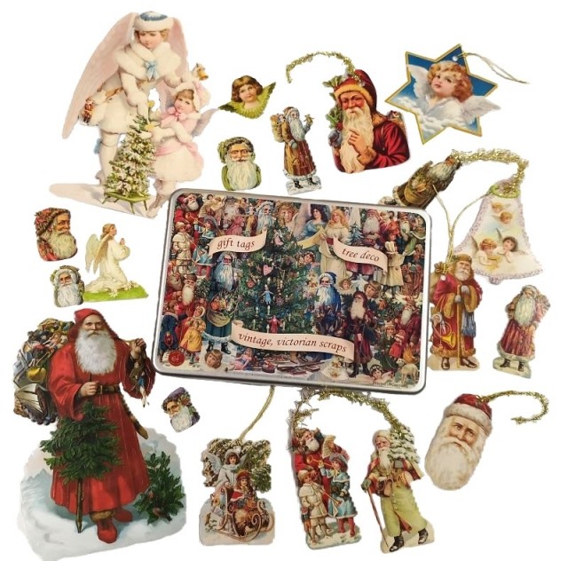 Glansbilder var mye brukt som julepynt rundt 1900, enten alene som disse, eller som dekorasjon på pynt av vatt eller kreppapir.