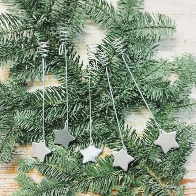 Sølvfarget balanselysholder med stjerne til juletrelys.