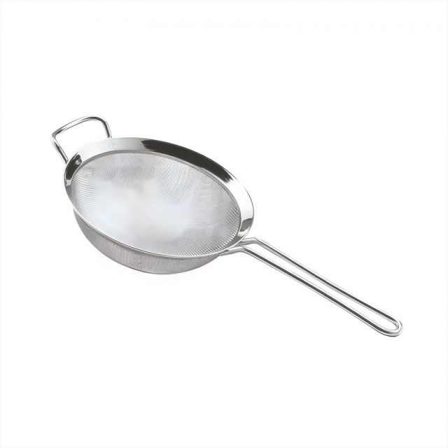 Et praktisk redskap som gjør det enkelt å sile tørre ingredienser og væsker med presisjon. Det lange håndtaket og støtteøret gir trygg og stabil plassering over boller og kjeler.