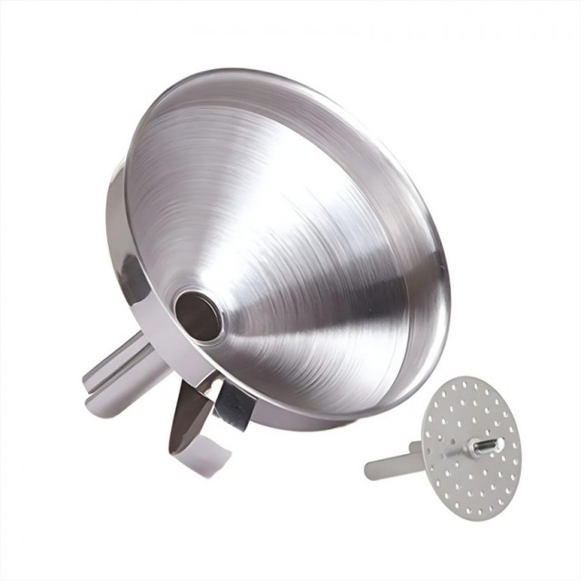 Klassisk trakt av rustfritt stål med praktisk, uttakbar rist i bunnen. Perfekt til safting og alt kjøkkenarbeid som innebærer overhelling av væske eller tørrvarer.