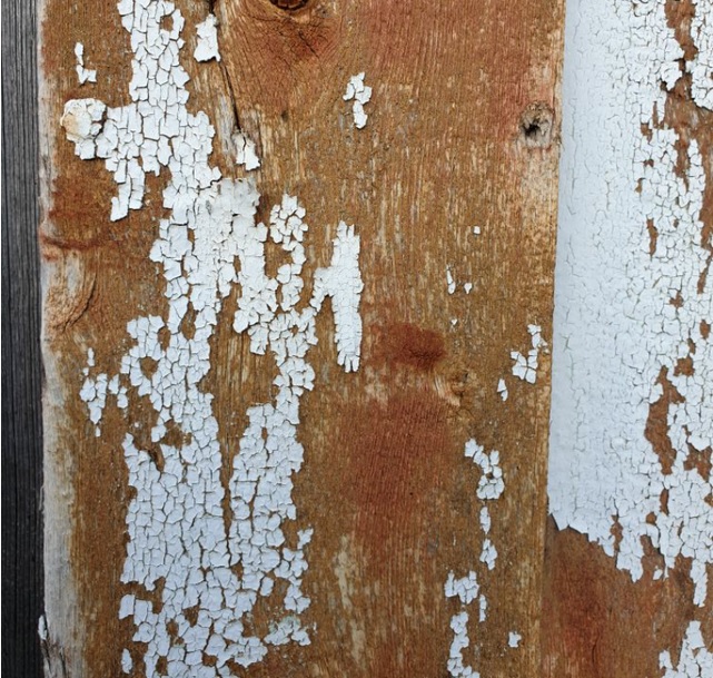 Bildet til venstre: Svært nedslitt tranmaling, malingen har trengt inn i kvistene, noe ingen