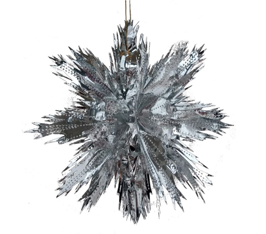 Sølvglanset rund pynt til oppheng i tak eller vindu. Diameter ca 30 cm