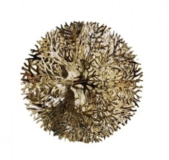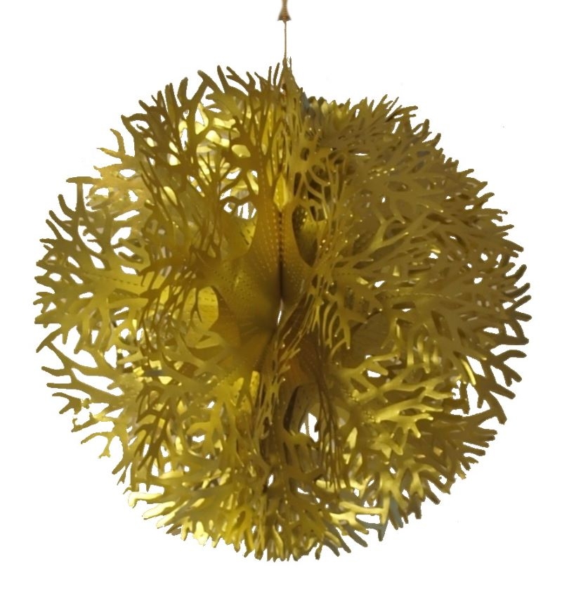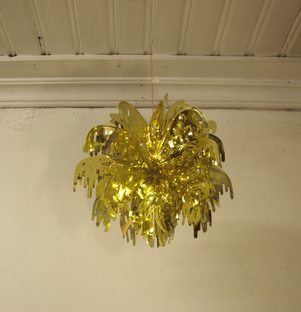 Gullglanset rund bukett til oppheng i tak eller vindu. Diameter ca 30 cm