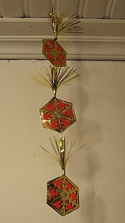 "Lysekrone" av gull med tagget oppheng - original 1970-talls julepynt