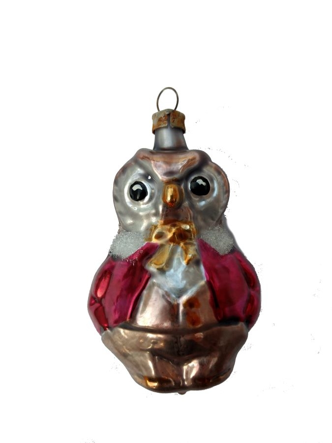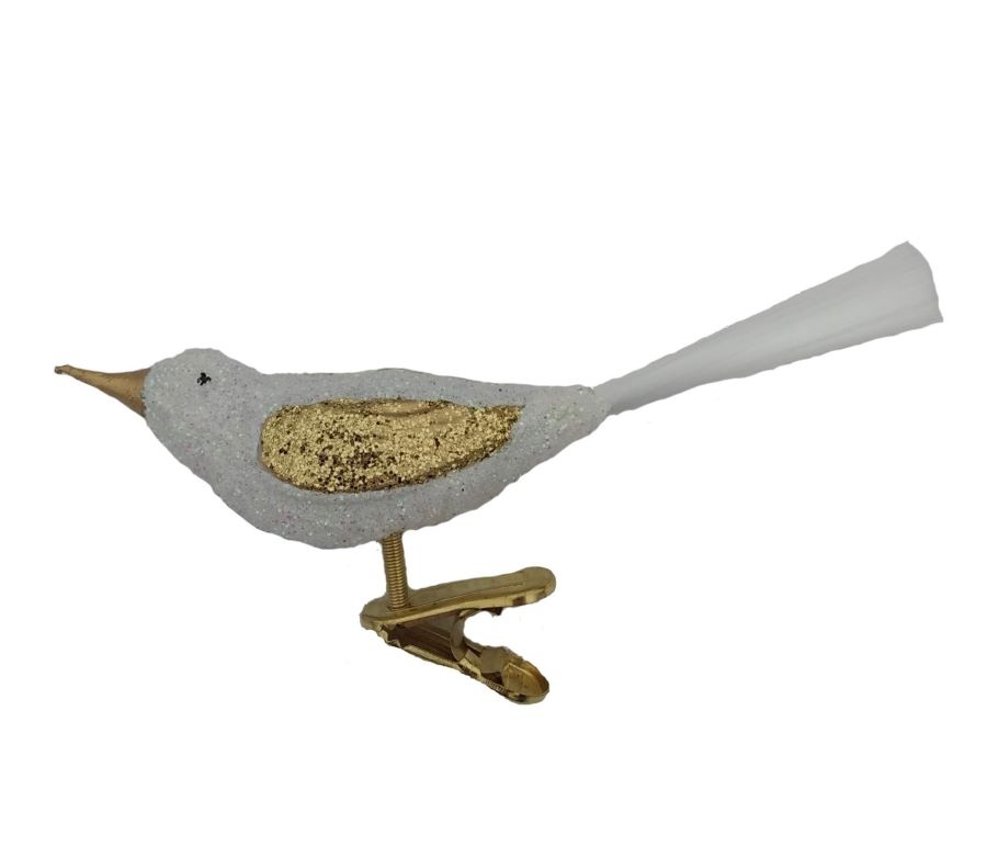 Gammeldags glassfugl med stjert og vinger av metallglitter.
