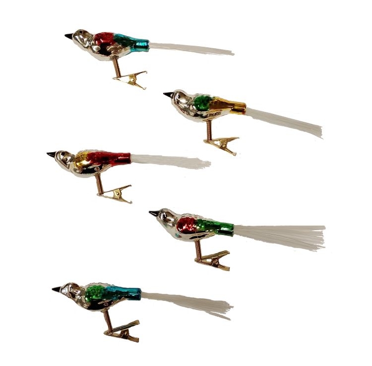 Nostalgiske fugler til juletreet, pakke med 5 stk.