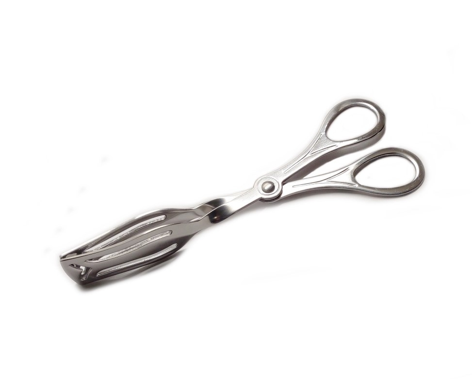Praktisk klype av stål til servering av smørbrød og kaker.