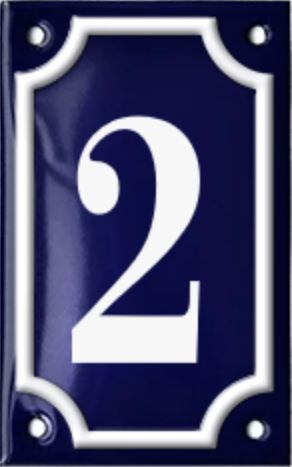 Emaljert husnummerskilt med enkel staffering (ramme) i serien Metropolitan, blått med hvit skrift.