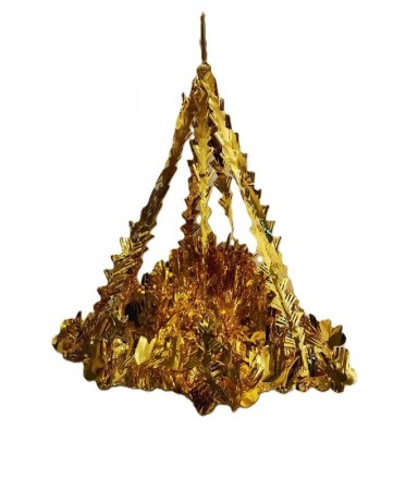 Stor, glitrende glanset "lysekrone" i gull til oppheng i tak. Jule- og nyttårsfestens midtpunkt! Overflaten er i plast med et karakteristisk metallutrykk og flott fargespill.