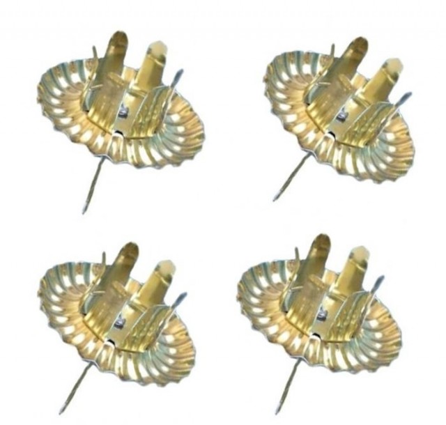 Gullfarget lysholder til bruk i adventskranser og dekorasjoner.