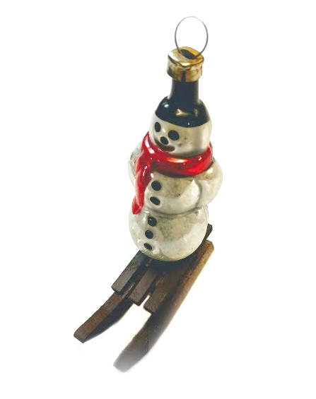 Snømann av glass på trekjelke, munnblåst og laget i gammel, restaurert form.